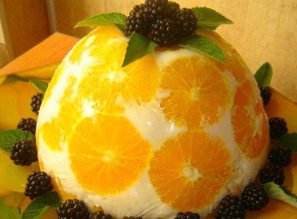 1. Залить желатин апельсиновым соком и оставить его набухать. Апельсины порезать кружочками и снять с них кожуру.