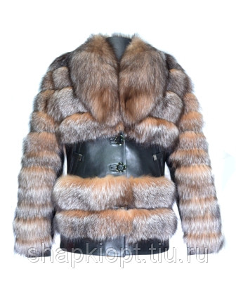 Куртка изготовлена из натурального меха блюфрост цвет кристалл. Мех расшит горизонтально с высококачественной натуральной кожей КРС черного цвета. На внутренней стороне рукава и по талии натуральная кожа КРС.