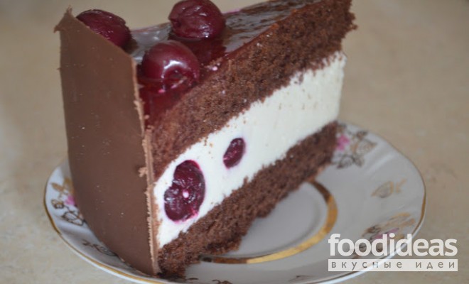 Вынуть самый вкусный торт из холодильника, выложить вишни на шоколадный корж и залить их небольшим количеством желе (чтобы они застыли на своем месте). Снова поставить торт в холодильник на 15-20 минут, спустя указанное время вылить остальное желе.