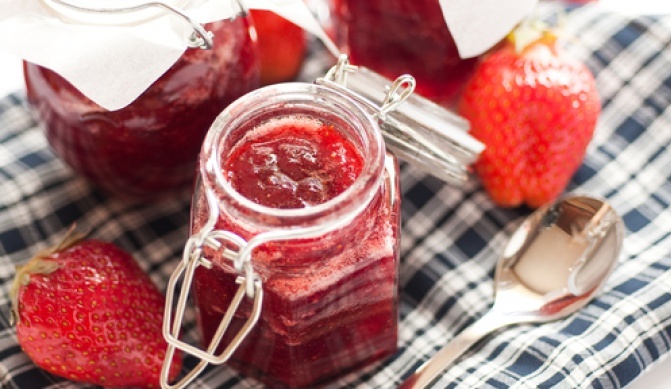 Кремообразная масса красного цвета со вкусом и ароматом клубники с кусочками ягод