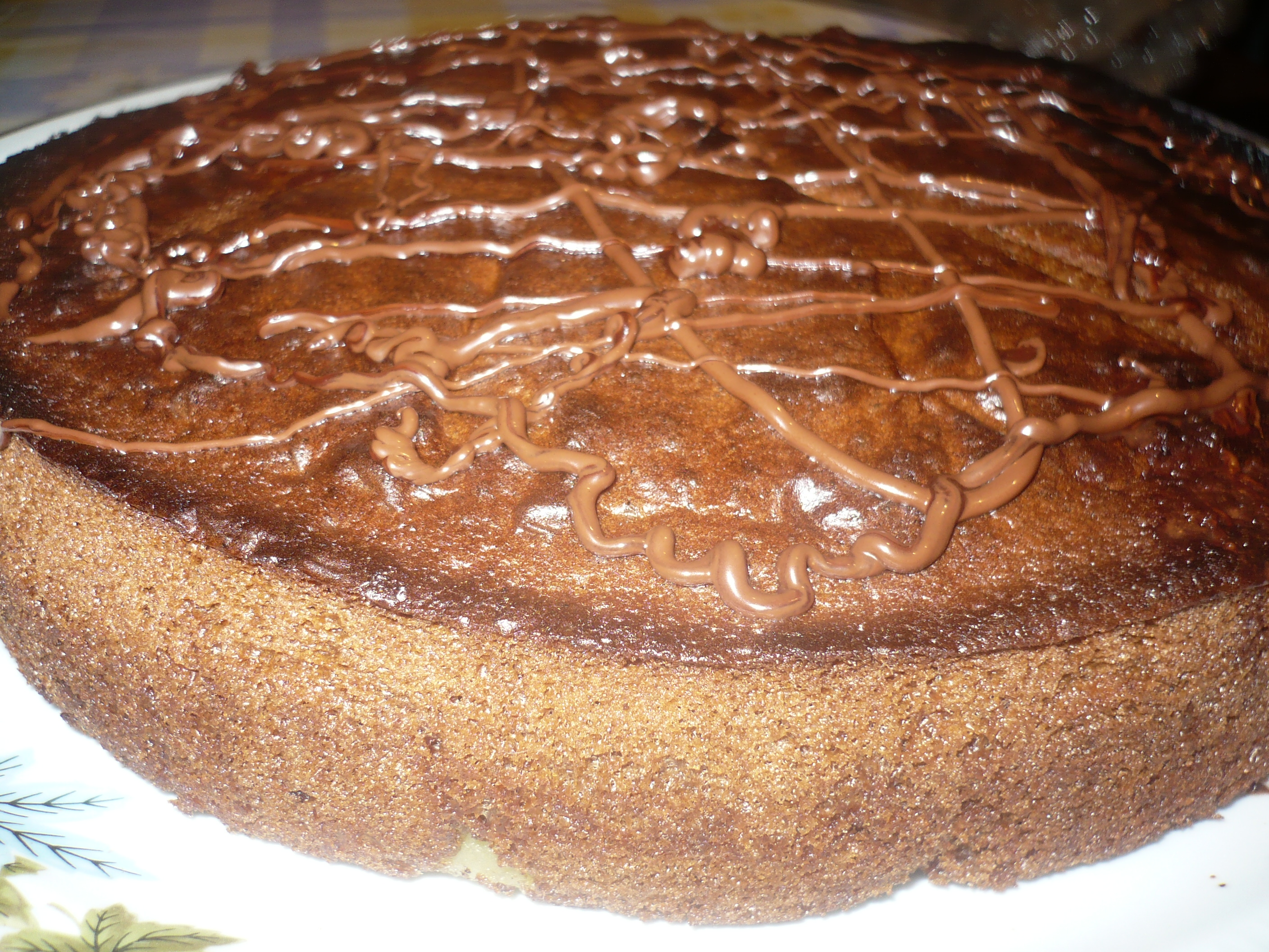 Для украшения растопить шоколад на водяной «бане», удобно это сделать так же в пакетике. Отрезать у пакета малюсенький уголок и нанести на пирог шоколадную паутинку. Получается очень красиво и аппетитно!
