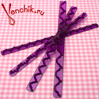 Данные оттиски использовуются для создания рисунка на мастике или марципане. Они позволяют создать интересный и необычный рисунок, для чего оттиск достаточно положить на мастику и немного надавить на него рукой. С помощью такого набора Вы непременно приятно удивите и порадуете даже самых привередливых своих гостей.