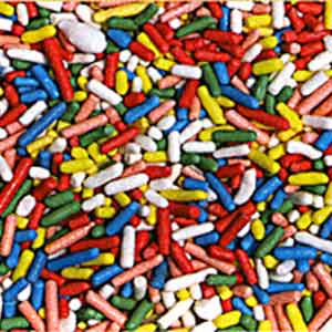 сахаристые палочки длиной 5-7мм, разного цвета, сладкого вкуса, без посторонних запахов и привкусов .