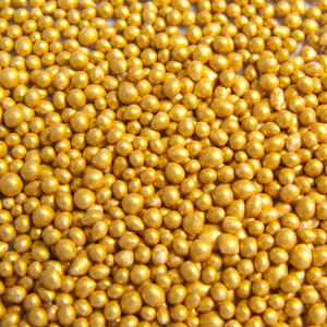 сахаристая посыпка в виде шариков диаметром 1,5-2,5 мм,золотого цвета с перламутровым отливом, сладкая, без посторонних запахов и привкуса