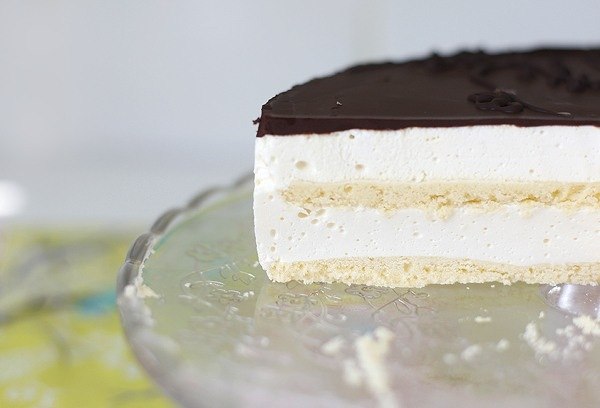 Положите сверху еще один корж и опять залейте суфле. Поставьте в холодильник застывать на 3-4 часа.