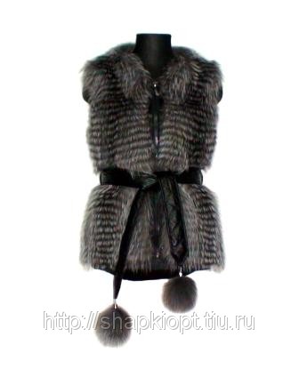 Ворот из меха блюфрост. Застежка молния. Декоративная отделка проймы, горловины, карманов и молнии. Пояс с колокольчиками из меха. Подклад. Рекомендуемые размеры от 40 до 60, длина изделия от 60 до 65 сантиметров. Жилет рекомендуется для прохладной погоды.