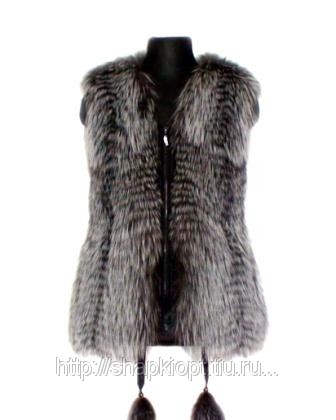 Ворот из меха блюфрост. Застежка молния. Декоративная отделка проймы, горловины, карманов и молнии. Пояс с колокольчиками из меха. Подклад. Рекомендуемые размеры от 40 до 60, длина изделия от 60 до 65 сантиметров. Жилет рекомендуется для прохладной погоды.
