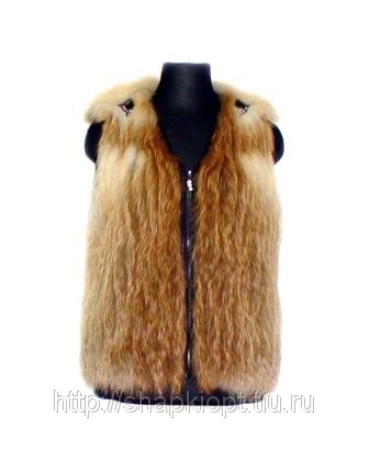 Ворот из меха рыжей лисы. Застежка молния. Декоративная отделка проймы, горловины, карманов и молнии. Подклад. Жилет рекомендуется для прохладной погоды.