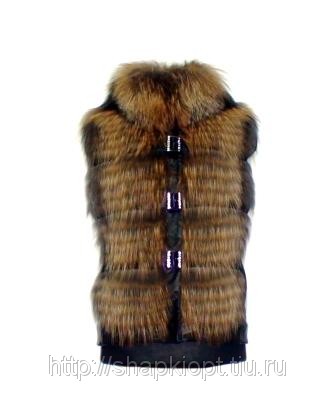 Ворот-стойка. Подкладка жаккардовая. Застежки кнопки и декоративные пряжки. По бокам карманы. Рекомендуемые размеры от 40 до 56, длина изделия от 65 до 70 сантиметров. Жилет рекомендуется для прохладной погоды.